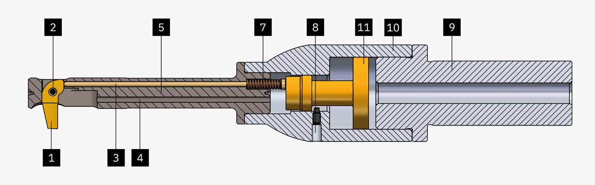 根据加工环境和应用要求,可在内部冷却液压力、空气压力或手动驱动类型之间进行选择。模块化设计使在标准范围内进行改造成为可能。如果需要,可以对现有工具进行改造。